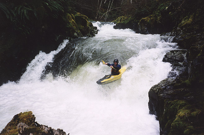 Keep your bow up or get pounded.. the author boofs hard to avoid the hole on the second part of the double ledge-drop.