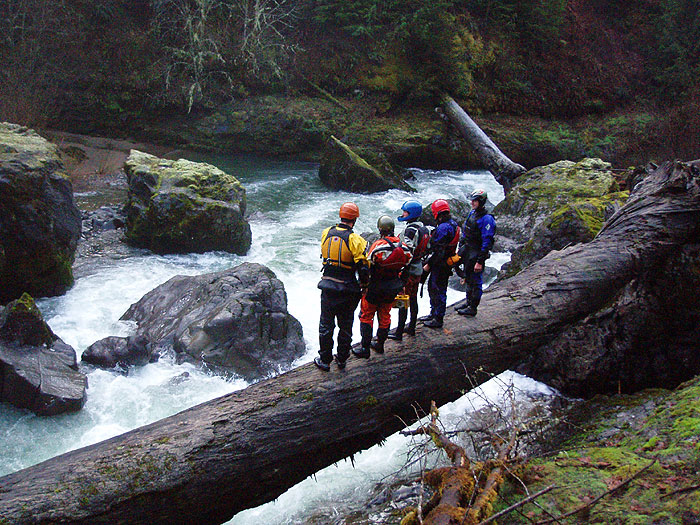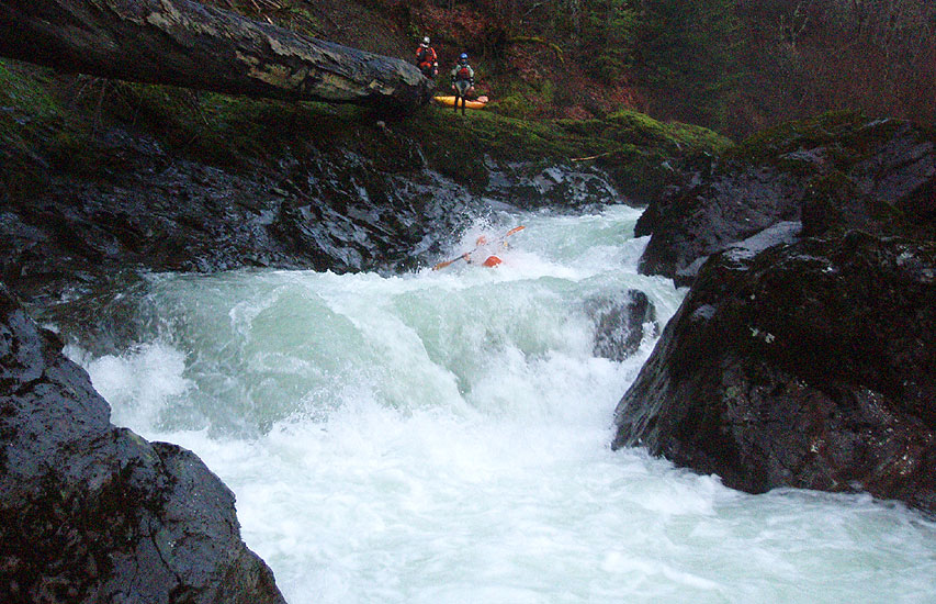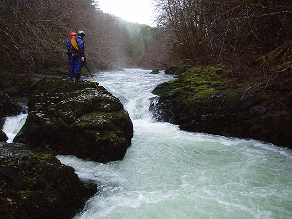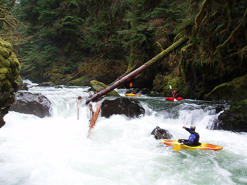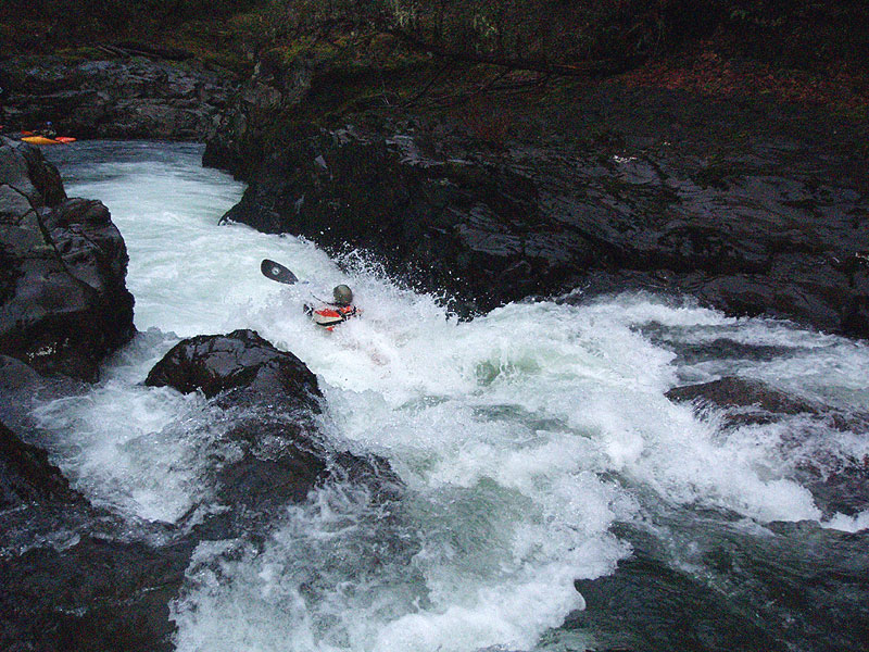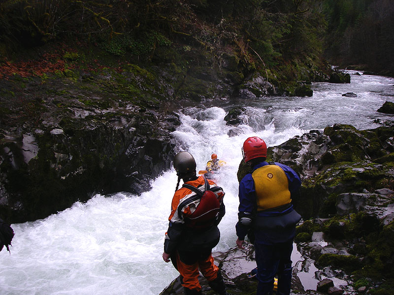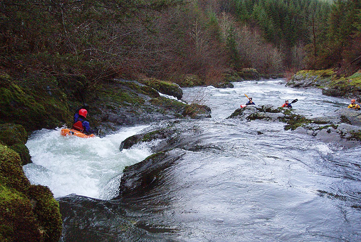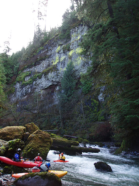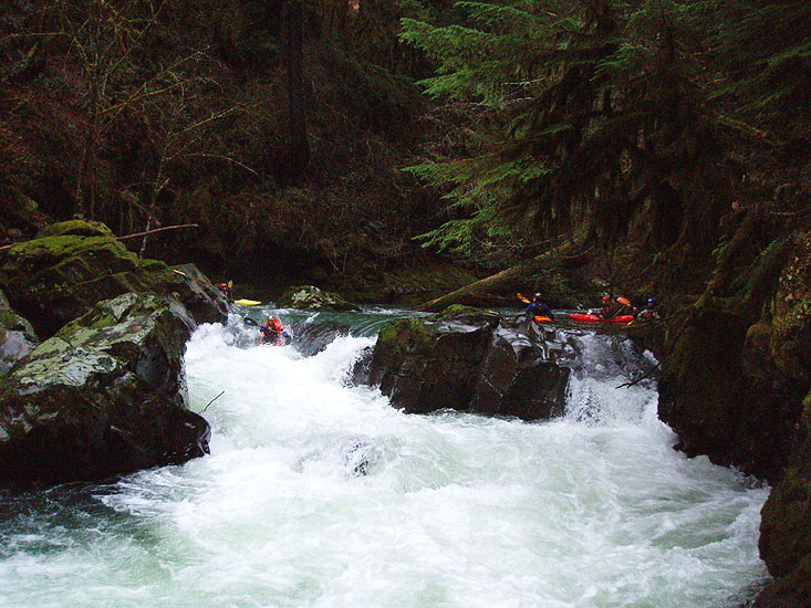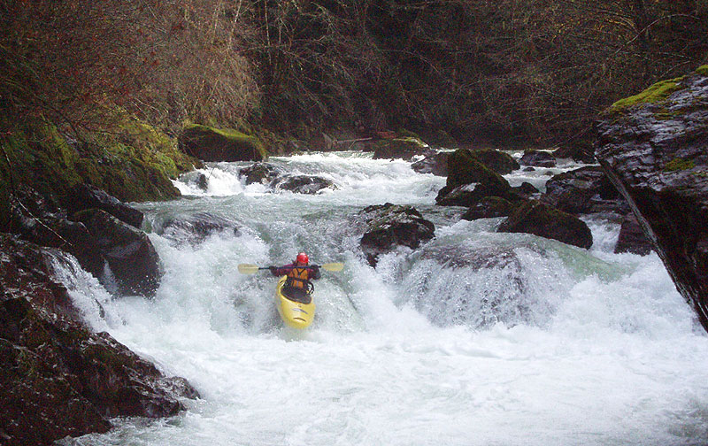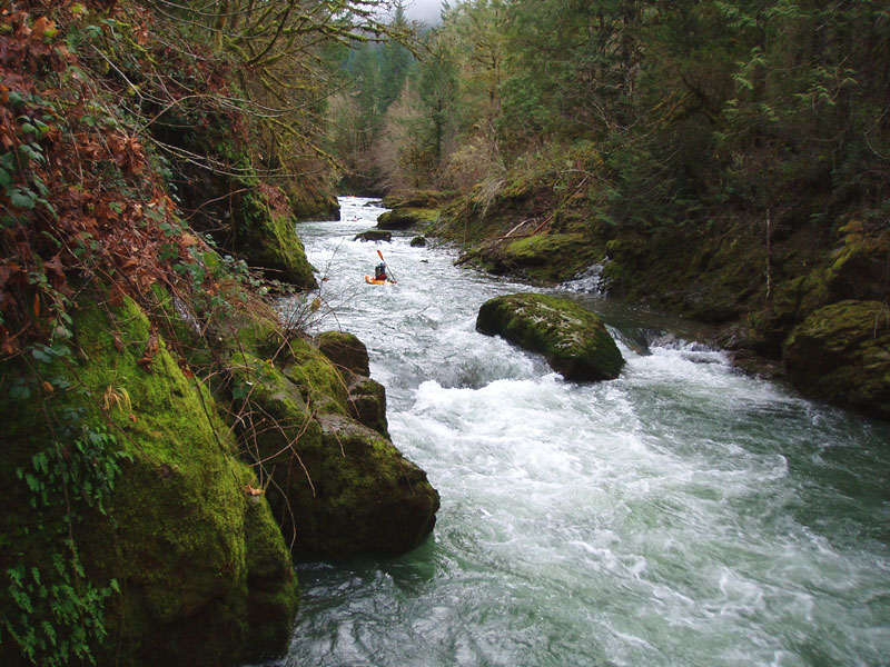 Historically, the lower five was only run by itself when the upper two miles were too high, or when paddlers suffered a mental meltdown scouting Day of Judgement from the road. These days, a strong resurgence in the Corvallis creeking community has once again raised the profile of the lower five.