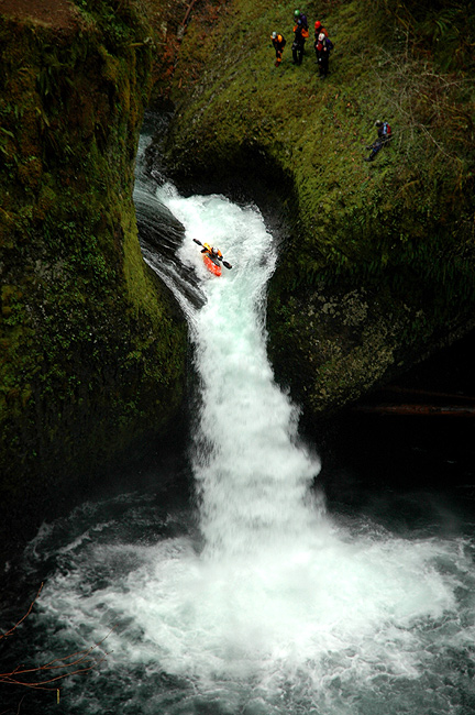 The lead-in to Punchbowl Falls is a narrow six-foot auto-boof with an eddy on the left below it. Peel out of the eddy with left angle, hit the reaction hole in the center, tuck it up and free fall about thirty feet into the pool below.