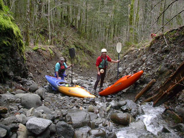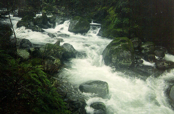 Gauge:   Instead of turning back to the powerlines, go straight to the bridge on Evergreen Dr. which crosses the creek. Don’t laugh. It’s pitiful here. Look over the bridge on the downstream side where a small metal culvert comes into the creek from the west. The creek needs to be spilling into the culvert by 3 inches at least. A little water in the culvert goes a long way upstream and half a culvert will be movin' up above. Also look for at least 1600 cfs or more in the E. Fork Lewis gauge with wet snow at higher elevations.