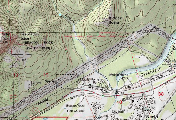 Park a car at the N. Bonneville Chevron. Go out of N. Bonneville and take a left on SR14. Take the next immediate right on Evergreen Dr. Take the next left where a gravel road leads north past a metal shop under the power lines. Park where the road is now closed by a berm. It should have taken about 4 minutes from where you left the other car.