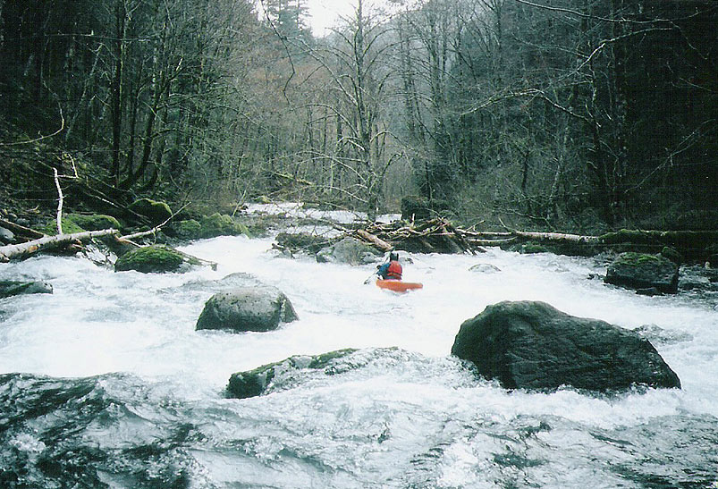 Hazards:   The most complex drop, Pick-Up-Sticks, has too much wood right now. Other drops push together around corners and one had a chunk of old growth mid-drop which required a short walk. There is one big limbo which may be too thin for big boys at higher flows.