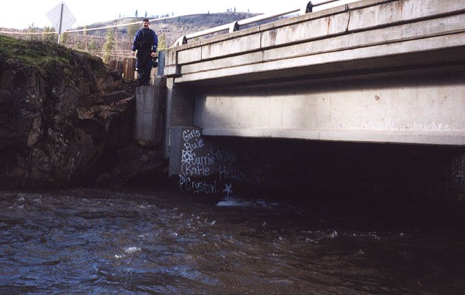 Pete stands above the bridge piling we used as a gauge.