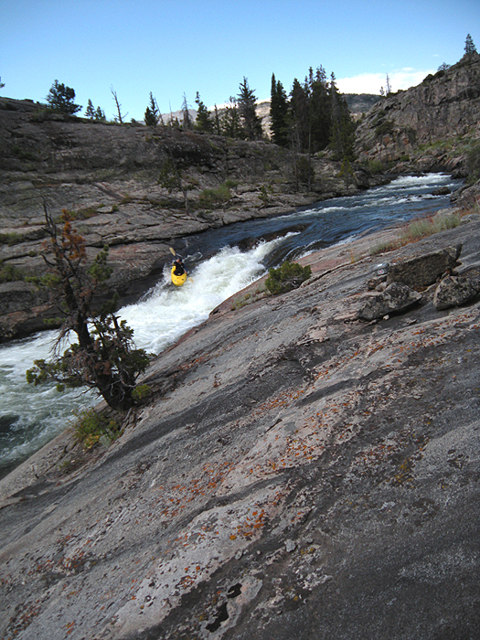 After portaging, you are again reminded you are in Wyoming not California by a mile of slightly manky boulder gardens. Everything is runnable and pick your way through the boulder fields carefully, as they get very steep at times and the wood could change constantly. This section reminded me of the Clark's Fork of the Yellowstone day run.