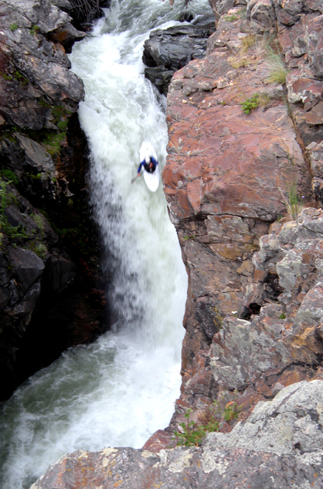After the Cali section, we were treated to a fantastic surprise of two double drops. The first of the two is a twenty footer followed by a ten footer known as Double Deuces. A good boof-stroke followed by a fast recovery was necessary to make this drop look good. You can eddy out above this drop on either side of the river.