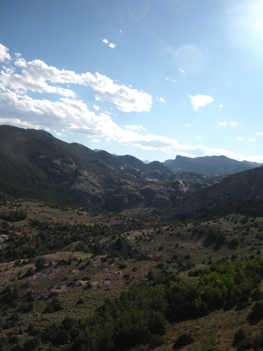 The Put-in for the N.F.L.W. is near the top of St. Lawrence Ranger Station road. ( recommend use of the Wyoming Gazetteer or obtaining a map of the Fort Washakie and St. Lawrence Quadrangles, to assist your trip.) Drive up the road about 16 miles until you pass a small outfitters camp on the right side of the road. The outfitter camp is noticeable by corrals, a tee-pee and trailers parked next to the road. After the camp drive roughly a half of a mile and look for a dirt road to your left. The road is completely unmaintained and simply goes left up a clearing and just out of sight of the road before ending at the overlook of the N.F.L.W.