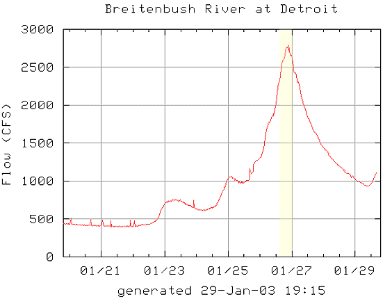 The image below shows the flows on the Breitenbush with the day we