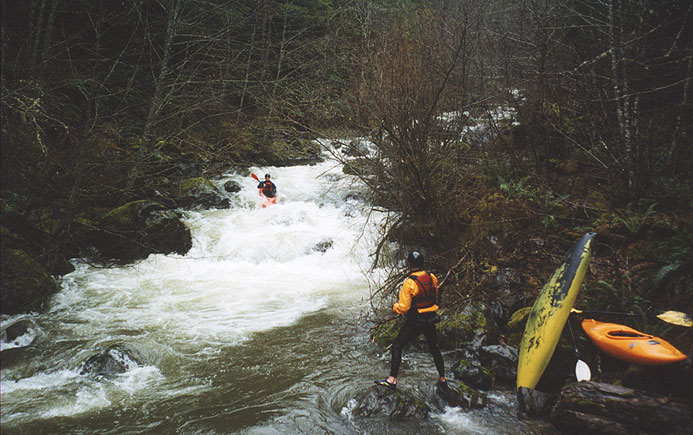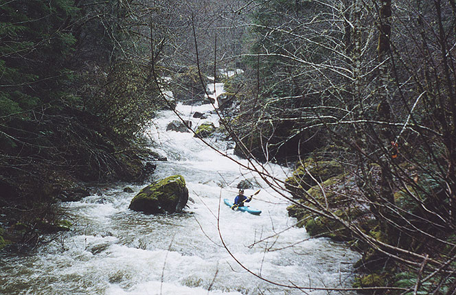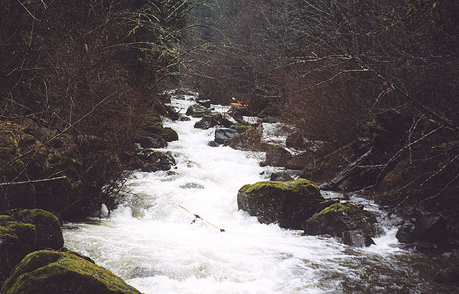 What still amazes me to this day is how long this wonderful little creek languished in obscurity. Paddlers have been driving over Sardine on their way to the upper North Santiam drainage for the last thirty years or more, apparently never noticing the gravelly little stream that comes into Detroit Reservior just above the dam. Little did they know that just around the corner and out of sight from the highway lurks one of the most impressive stretches of runnable whitewater this state has to offer.