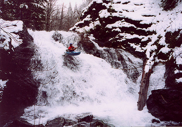 Andy runs the double falls on Sardine.