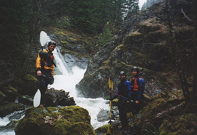 Putting in at the base of Chasm Falls: From the left, Jon, Pete, and Andy.