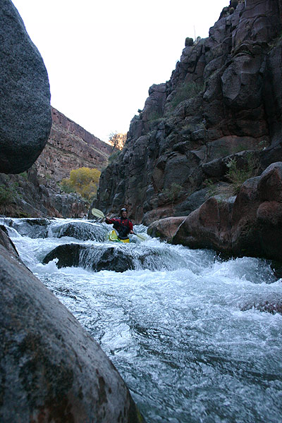 Jon Fowlkes and I aren’t fans of big water rivers.  It’s not that we don’t like paddling on big water, we just don’t have much experience.  Most of our paddling careers have been spent pinballing down low volume creeks in the Pacific Northwest.  So in December of 2005 when we found ourselves in the middle of a Grand Canyon of the Colorado trip, we were itching to do some creeking.
