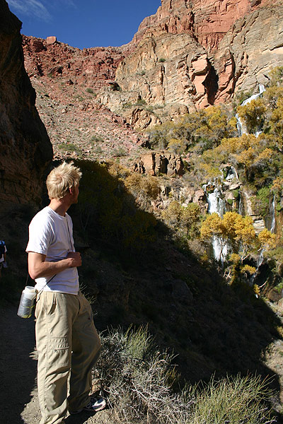From the trail on the canyon rim we could see waterfalls in steep rock gorge on Tapeats Creek, and for Jon and I this was enough and we couldn’t say no.