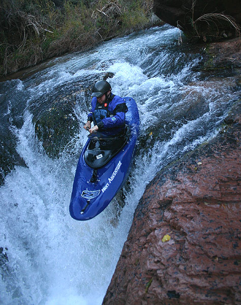 Mike boofs a folding falls near the top of the run.