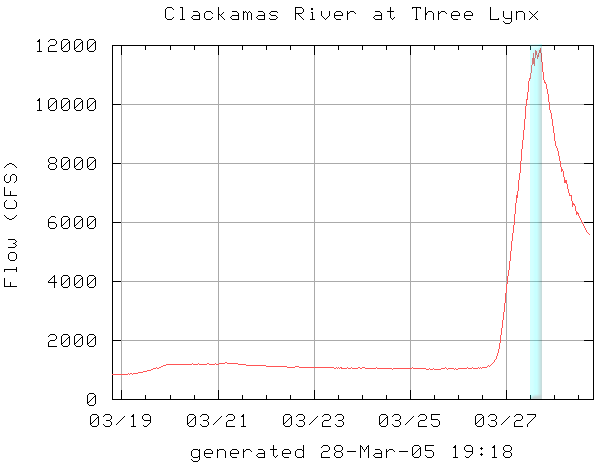 The flows on the Clackamas at Three Lynx while we were on the creek.