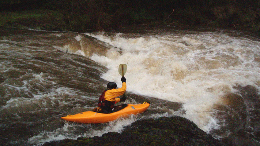 Ryan Windsor digs in for the boof at Dobo Falls..