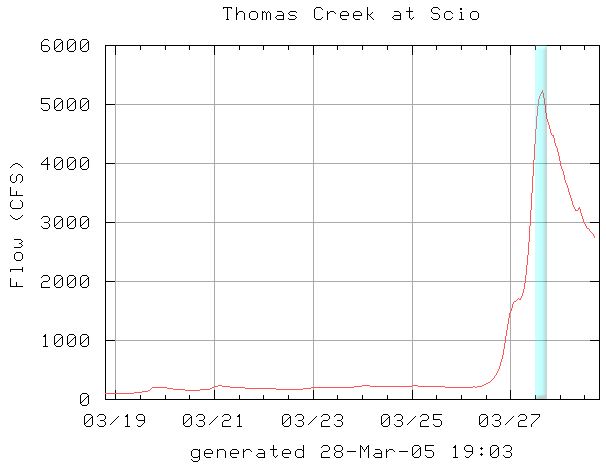 The flows on Thomas Creek at Scio while we were on the creek.