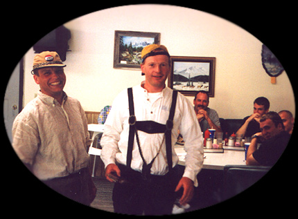 After a run down Opal Creek on a recent trip to the States, Jurgen (left) and Martin (right) impress the locals at the Swiss Village Restaurant with their authentic yodeling skills...