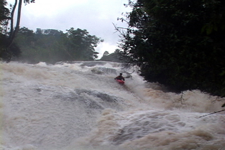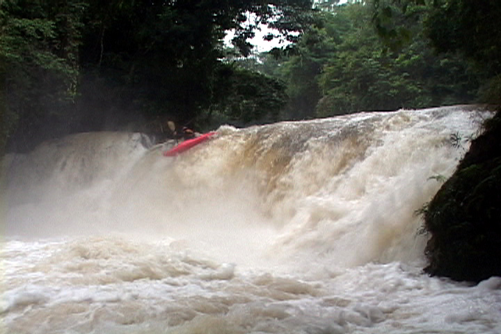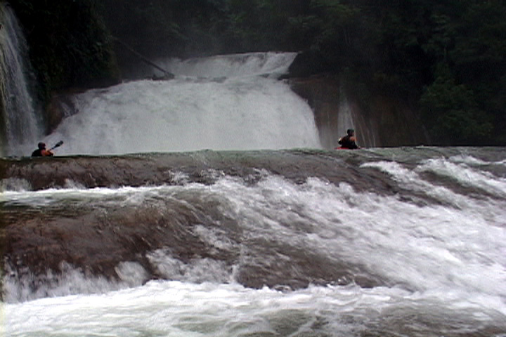 Maybe my Embudo will keep me off the bottom... Ben Stookesberry rips over a 55 footer in the river-right (first) channel on the Agua Azul.