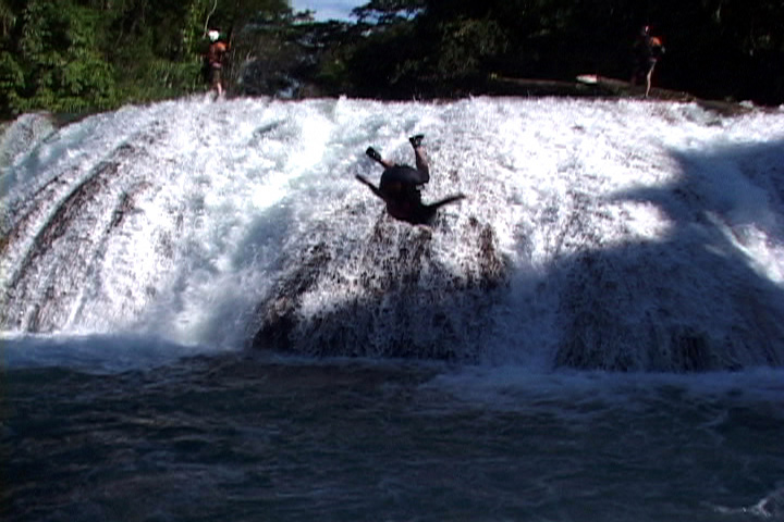 The middle channel on the Agua Azul offers a nice mix between huge travertine (limestone) slides and a amazing double drop. The pictures included here are from a high water day after a bit of rain.