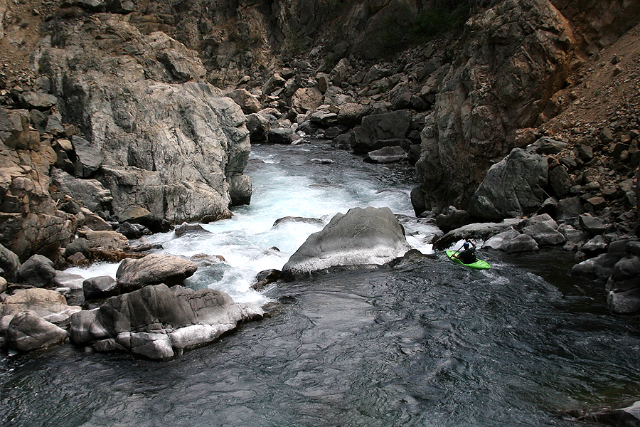 A moderate section of strong swift water lead into Boulder Sieve ( VI ). Again, Brad Xanthopoulos got out and helped position everyone for the sneak on river-left. Props to Brad for two days of great work!
