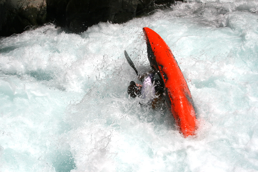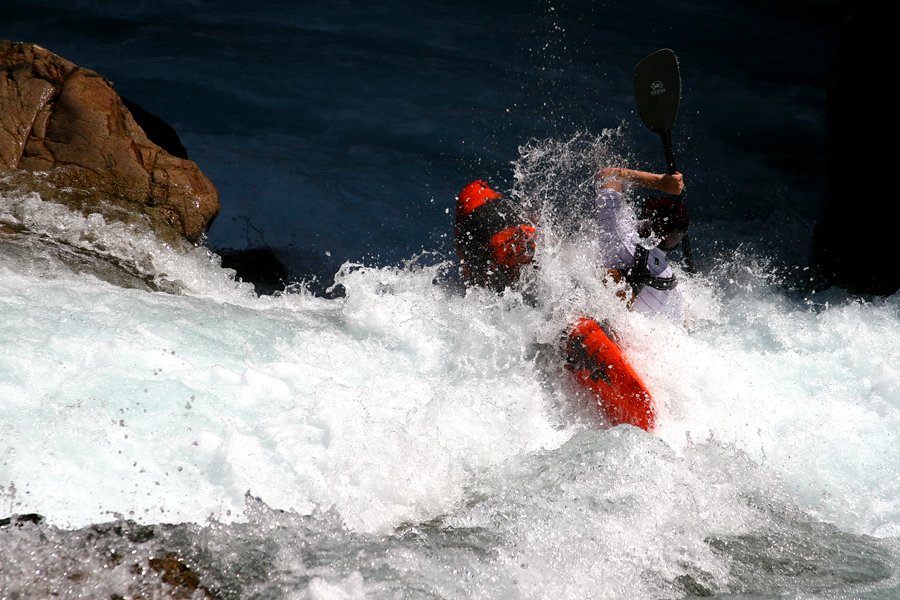 Without doubt the crux of Entrance Exam was Final Plunge, the narrow exit to this set of class V drops that featured a hungry hole. Of the dozen or so paddles that gave Entrance Exam a go maybe two thirds made it out in their kayak, and only a few made it look easy. The majority had creek boat rodeo secessions or swam.