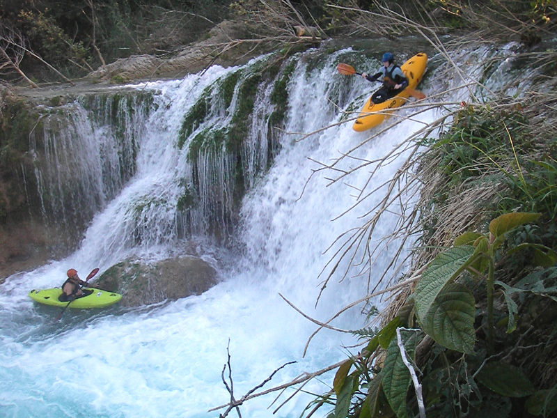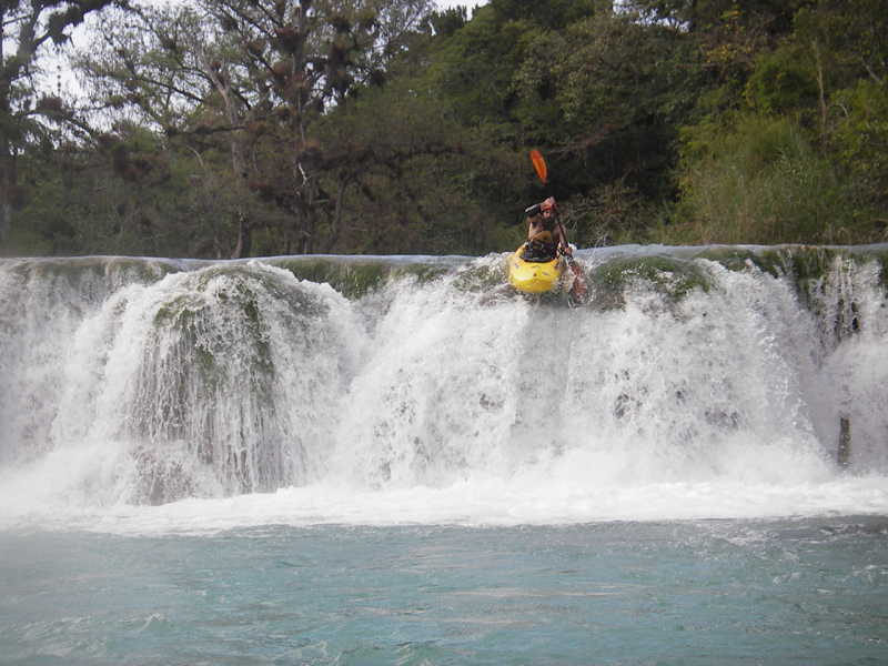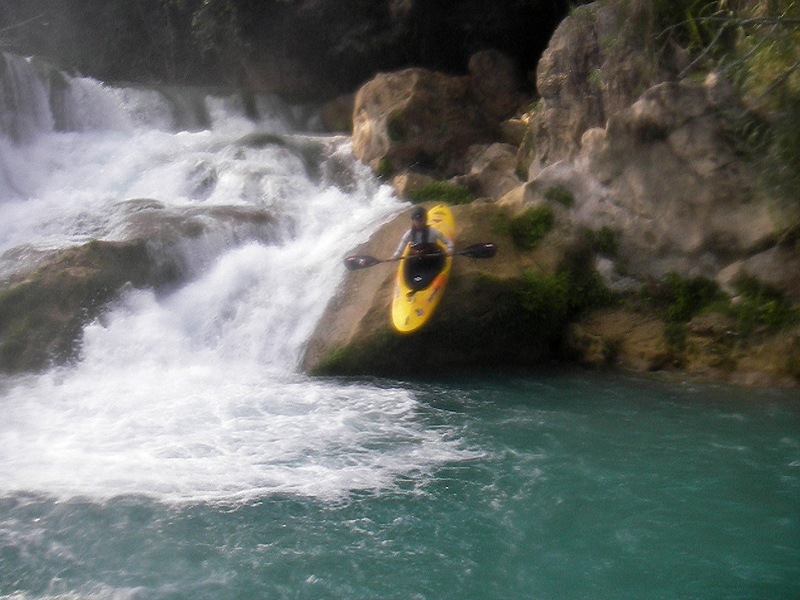Much like the the Micos, drops on the El Salto section are formed by travertine dams, creating large shields and pool-drop ledges. The impeccable visibility of the water offers a fascinating glimpse into the underwater development of these unique features. The Salto section is a step up from the Micos, offering remarkable drops, intriguing double hydraulics, and boof lines through trees leading to clean drops!