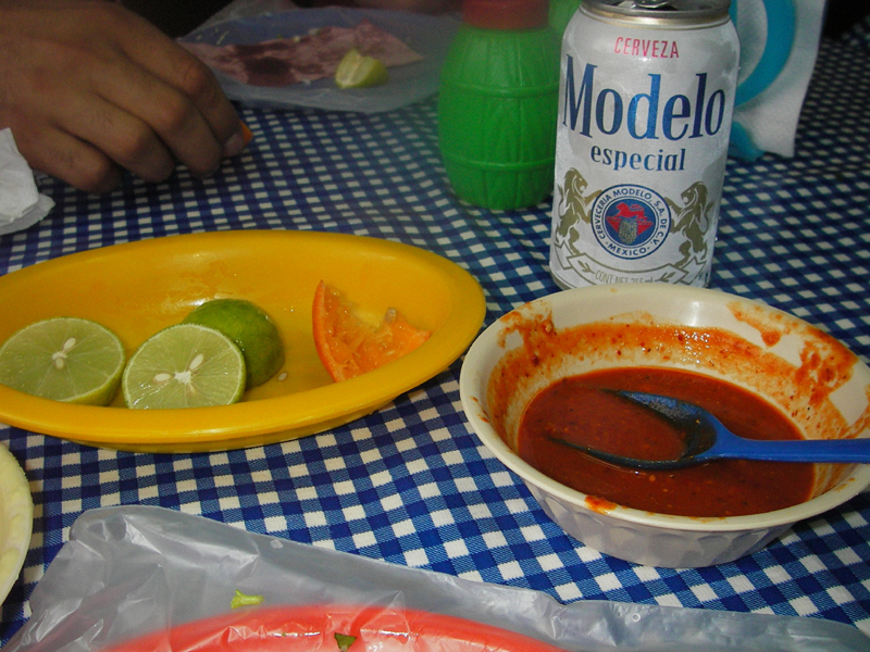 Be sure to stop in El Naranja after getting off the river. This town offers a little market, a liquor store, and great food. After our first experience on El Salto, we stopped by a taqueria and went off on taco consumption. The total damage was ninety-eight tacos, running at three cents per taco, a few Modelo Especiale beers each, and crazy hot salsa.