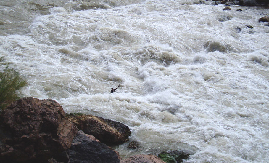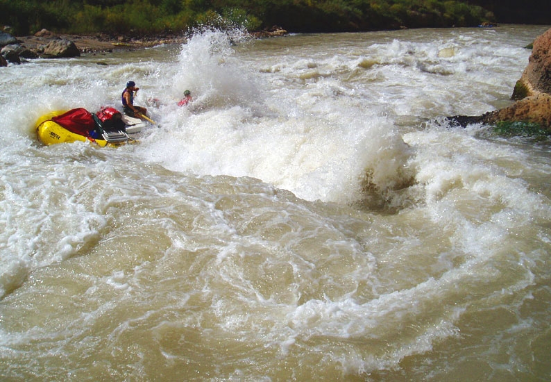 9) For kayakers, bring a playboat. All of the rapids are manageable by a strong class IV boater in a small boat, and the play is pretty good when you can get it. Make sure you boat is comfortable, but also remember you will probably spend at least twenty percent of your trip rowing the rafts because the Grand is 90% flatwater.