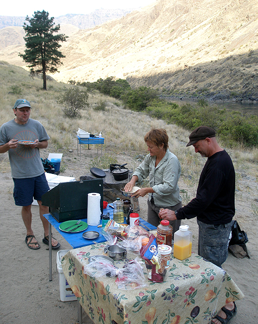 After dinner we called Paul and found out that the rest of the group was still far behind us, so we continued on to the campground near the put in. I don't know the name of the place where we camped, but it is along the river just upstream of Hells Canyon dam with a chain link fence along the road that is hard to miss. I think spots were ten dollars a nice if I remember correctly. There is plenty of room and we found a nice grassy spot on the hill that would accommodate everyone and set up camp. After an hour or so the rest of the group arrived, and we crashed out for the night.