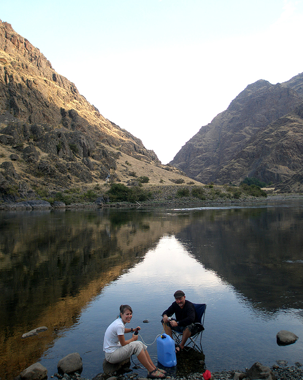 Sue Giordano and Kurt Shute filtering water at camp the first night. Thanks guys!