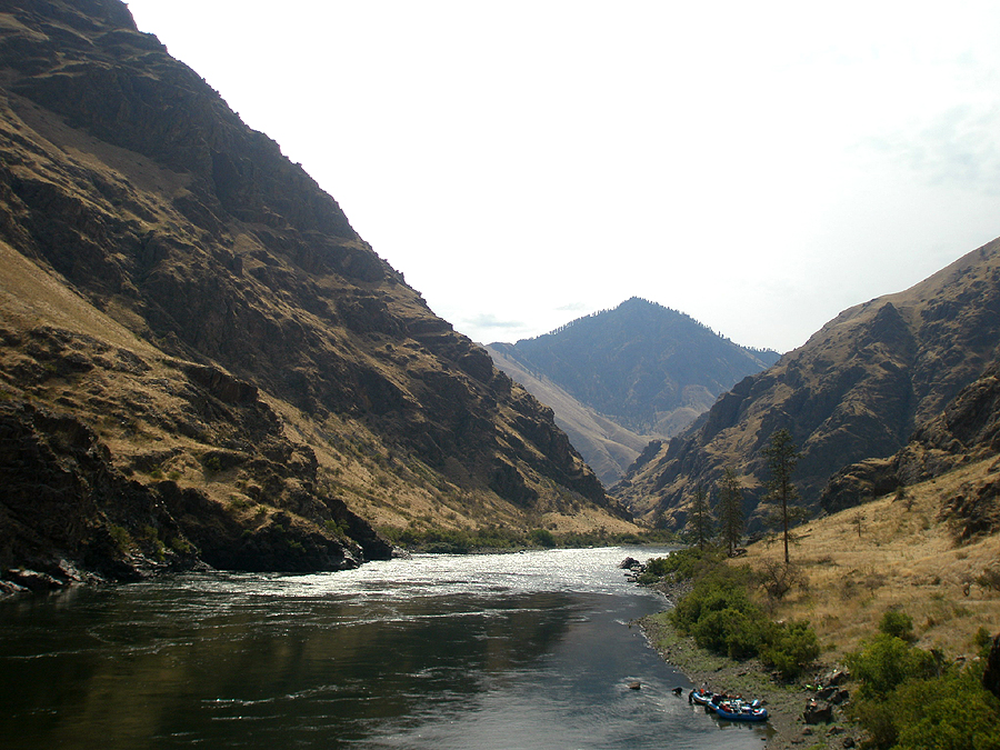 Rumors about the origin of the name 'Hells Canyon' abound, but it most likely stems from the early experiences of pioneers in the canyon. Apparently in the early 1900's there were many attempts to send wooden boats downstream with supplies from the area upstream of Hells Canyon Dam but none of the boats were ever heard from again. We now know that there is a massive cataract between vertical walls that is now underwater behind Hells Canyon Dam. This cataract was unportagable and took the lives of all of those early river explorers.