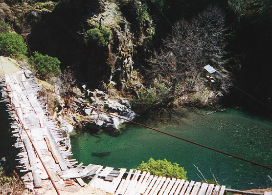 That was the last difficult rapid. The river held a couple more class II-III surprises, but basically mellowed into moving flatwater on the way down to the takeout. Soon we saw the rickety old mining bridge. This was the last obstacle. A steep climb up about 30 feet and then an equally perilous crossing over the ancient bridge and onward to our vehicles.
