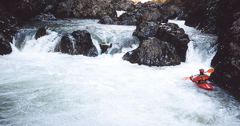 The Korb guidebook recommends that you avoid this section at high water, and I would agree with that assessment. There is no way out of the second gorge once you run the first drop except down the river, and at high water all portaging/scouting/safety options would evaporate and paddlers would be faced with a formidable and unavoidable series of V to V+ drops with horrendous holes (I can only imagine).