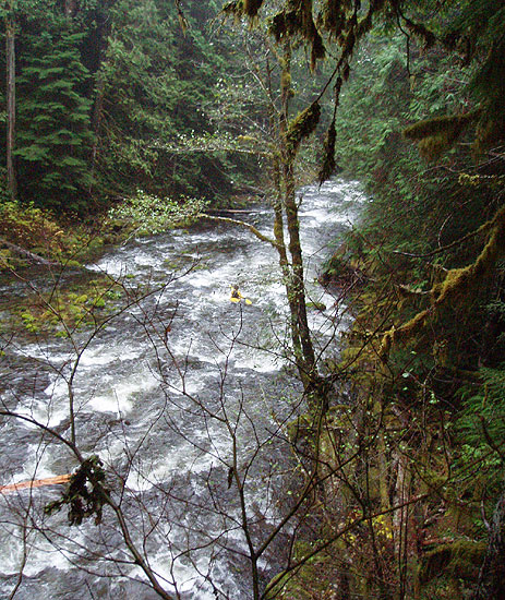 Pete had run this section many times since then, but I had never managed to catch it. Finally on 11/13/05, we had sufficient rain to bring the river up into the zone. On this trip we were joined by Charles Taylor and Nate Garr out of Portland.