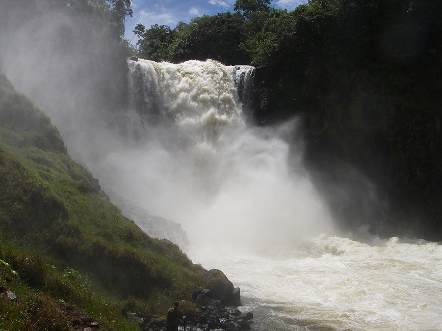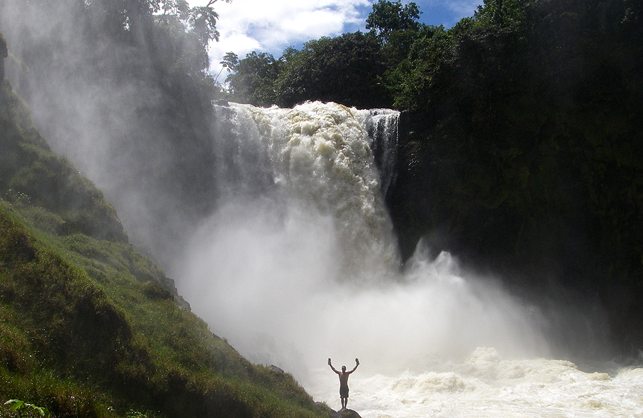 We made our way toward the falls and kept a close eye out for the Sucuri. Unfortunately we never saw the snake, but we were very surprised to see that the falls looked runnable. The base of the falls had a huge boil that would surge to six feet or higher at times. This was beautiful for a couple reasons: First, it was picturesque to see the power of the river and how it could create such a surge of water. Second it was a very good sign that the pool was deep, because only with a deep pool could the water and air mixture get so deep to surge so high.
