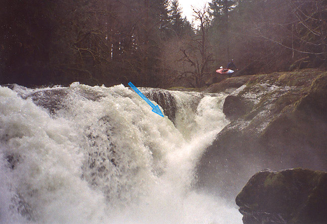 Then I saw the kind of sight that makes your stomach sink and your butt more water tight than a frog's. I was falling blind over a 20-foot falls into a canyon that was long, deep, turbulent, and with a backed-up fold. OH $#&^! Take a deep breath and hold on... Keeping my eyes open I could see the world disappear as I melted into the seam. Much later, upon deep reflection it was a rather beautiful sight watching the steam rise above my horizon as the beast I was about to wrestle alone closed its arms around me.