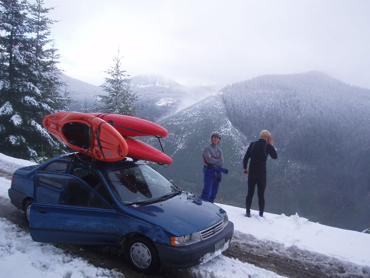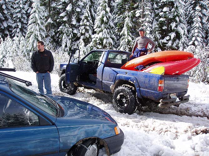Take us to the put-in ?!?   That sounded.. well, it sounded like the worst thing we could possibly do. Last time I checked, your car doesn't get any less stuck as more snow falls. The smartest thing to do would be to thank these friendly locals for helping us out, let them pull us out, and go back to more Terkle-friendly pastures.