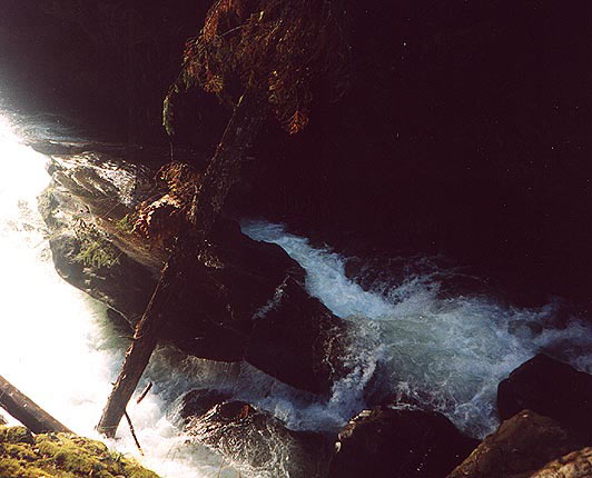 Suddenly the lights went out, things got a little calmer and I felt myself slide under the boulder. I pulled myself along the bottom of the rock, trying to stay with the current and not get snagged. I slid another couple of feet, then the water surged and I stopped again, pressed against the underside of the slab rock, held there by the floatation of my PFD and the swirling currents.