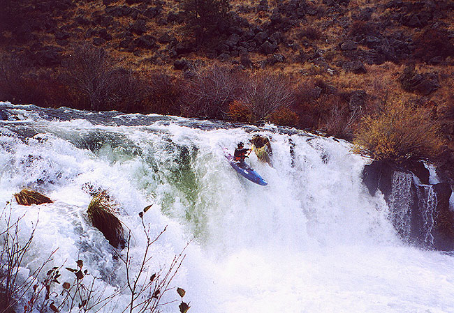 Jason Rackley sails over Steelhead Falls on the Upper Deschutes